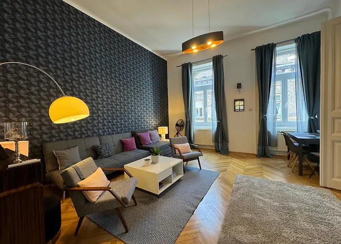 Dit appartement Double Blue Apartment biedt gasten een buspendel en ligt op 25 km van Boedapest luchthaven. Het appartement van 70 m² is hangig gelegen op 19 minuten loopafstand van Hongaars parlementsgebouw en binnen ongeveer 10 minuten wandelen van het metrostation Vörösmarty utca.